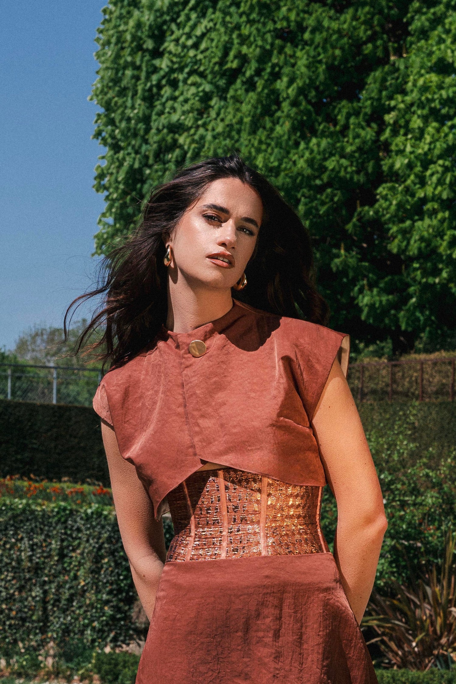 Pièce maîtresse du look Elisha, le corset structure la taille, révèle vos...